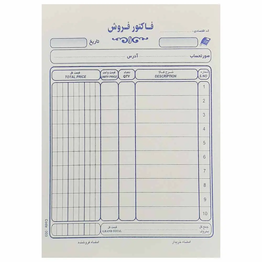 فاکتور فروش تک برگی سایز کوچک