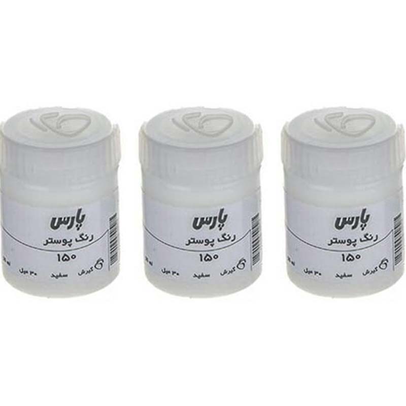 گواش پارس تک رنگ سفید حجم 30 میلی لیتر کد 150 بسته 3 عددی
